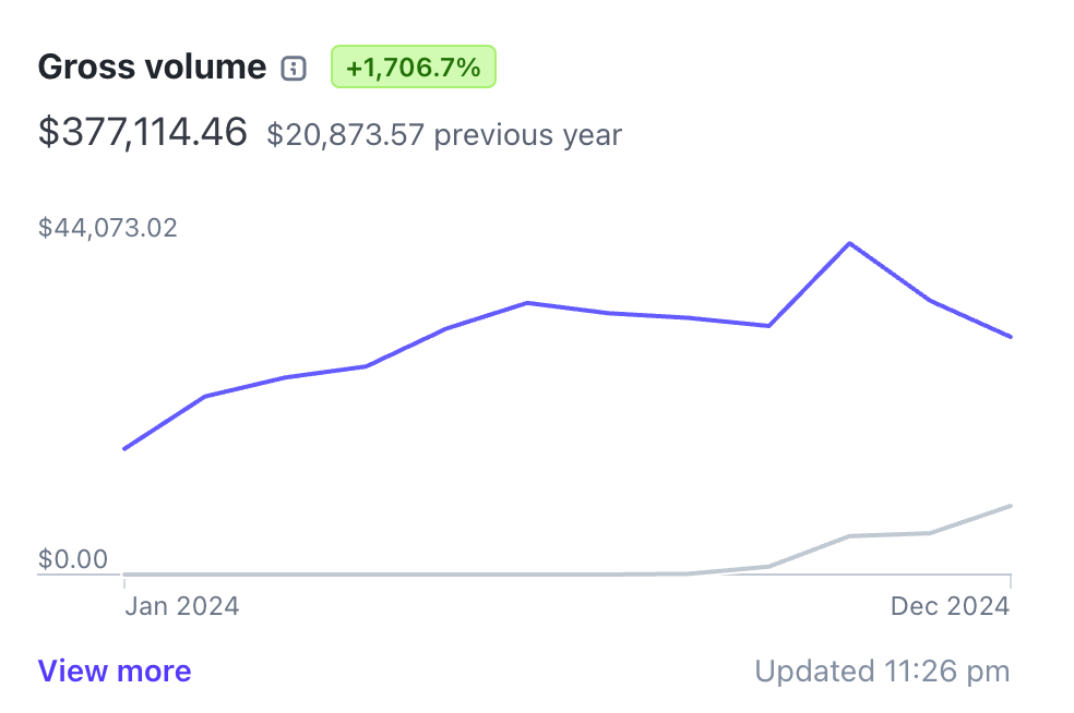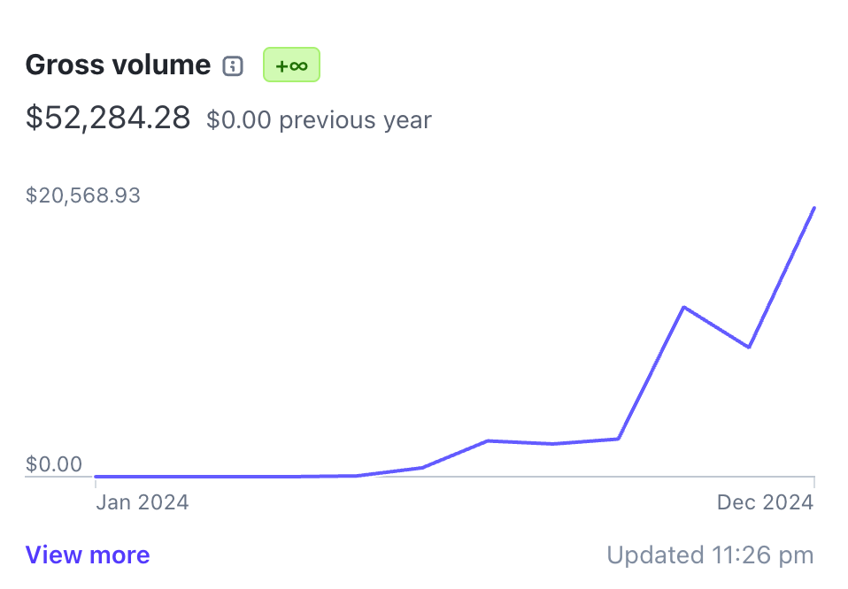 我在 2024 年一共做了 6 个项目,全部都是全年全职上班,兼职读博的情况下,用副业的方式实现的。其中 3 个项目的变现没有超过 1000 美金,1 个项目的变现没有超过 5000 美金,剩下的 2 个项目在 2024 年的全年营收情况如下。