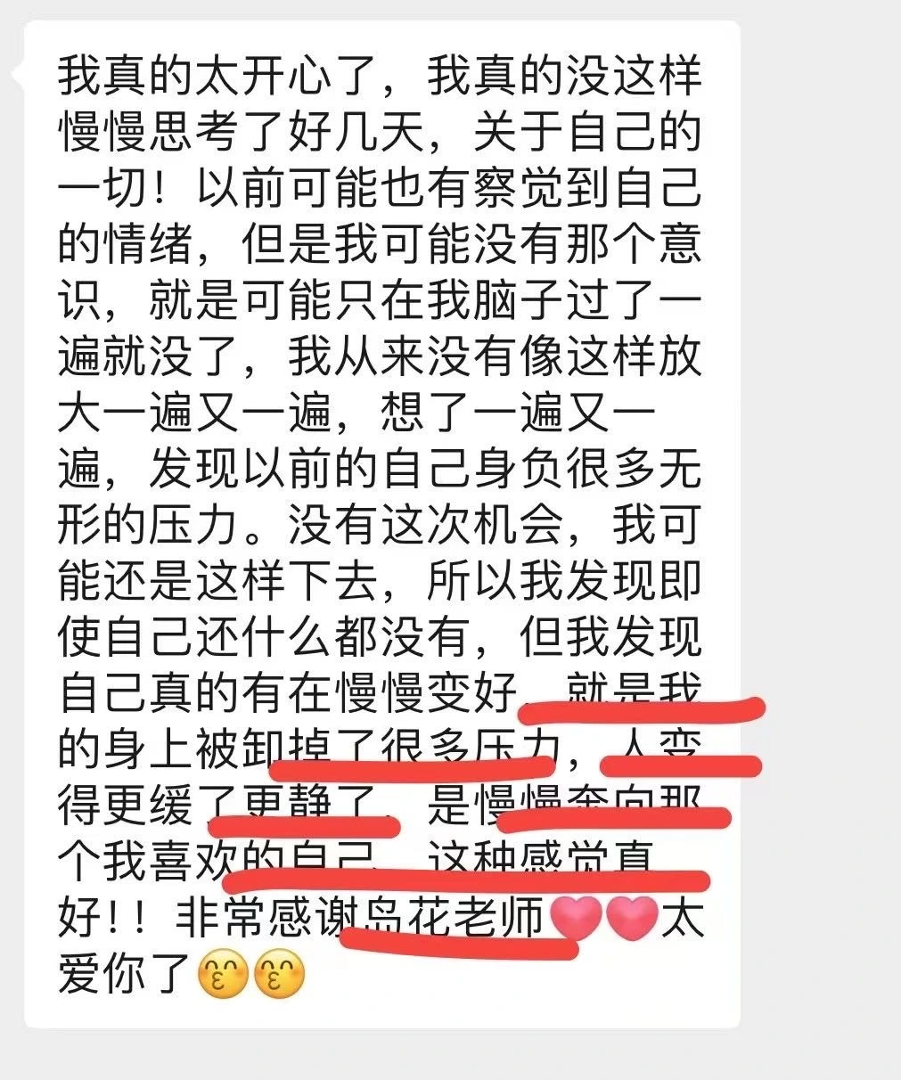 你学了【富能计划速通专栏】,有任何学习感受,收获,包括实践后拿到了结果等,欢迎你来找岛花用心反馈,同时,岛花也会根据具体情况,给到1对1的答疑和指导。