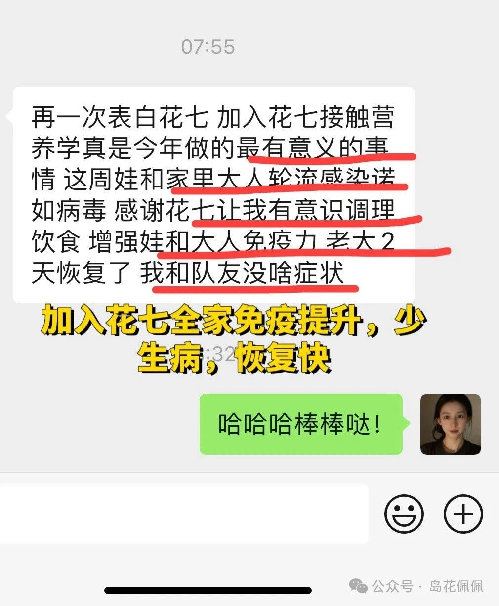 也可以扫下方码查看【花七】是如何诞生的,它和市面上一般的营养健康社群,有什么不同(这篇文,岛花刚发出来就立刻收了10w,里边有很多细节,值得你学习)