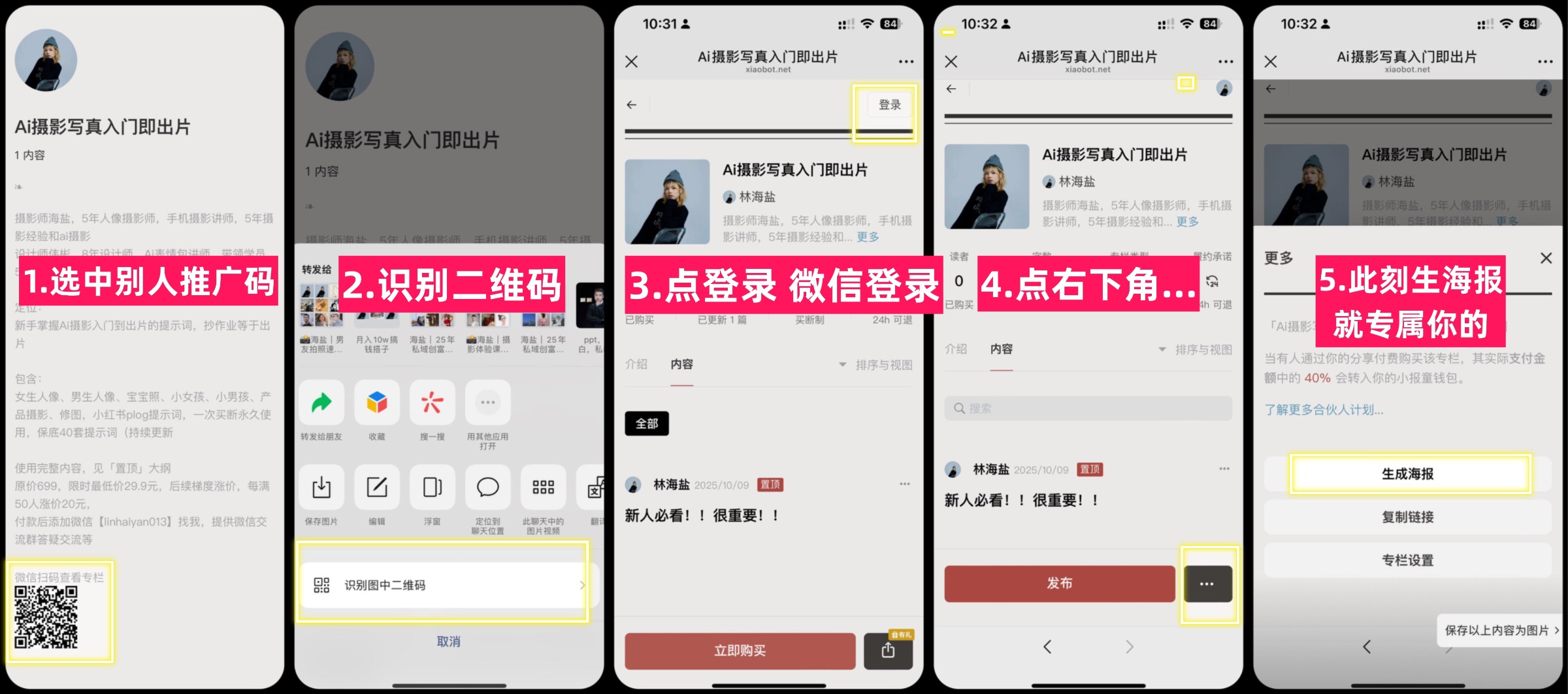 扫海盐的推广码,按照下方图生成自己的推广码,生成自己码以后,为了和别人的做区分,自己可以用美图或稿定添加一个带自己名字的贴纸,下次再分享可以快速识别自己的码