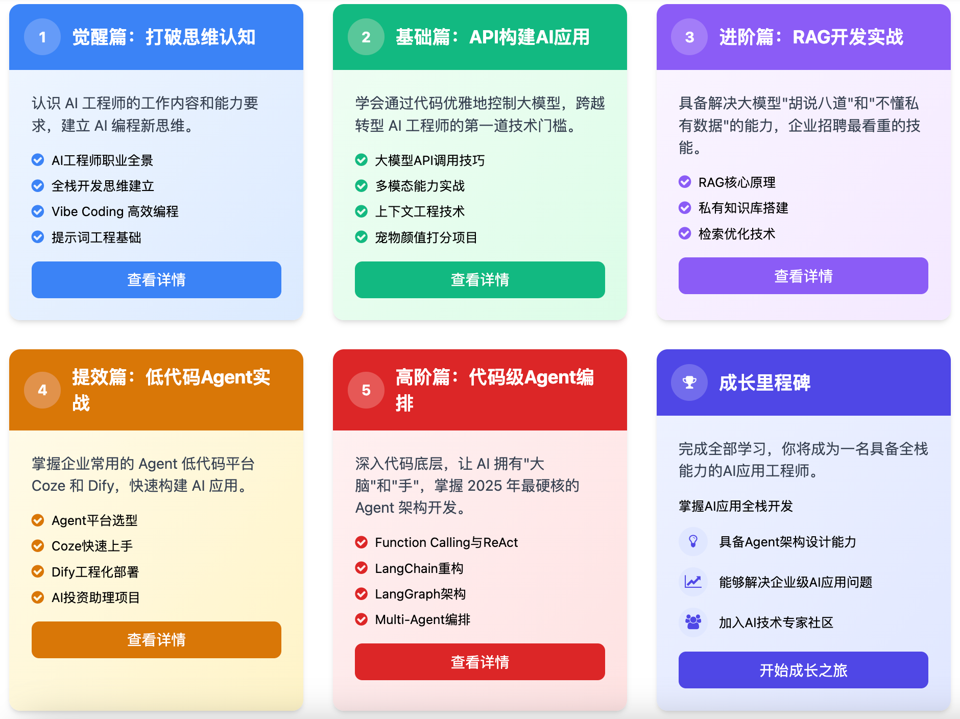 市面上的课,要么太浅(只教 Prompt),要么太深(教你推导 Transformer 公式)。