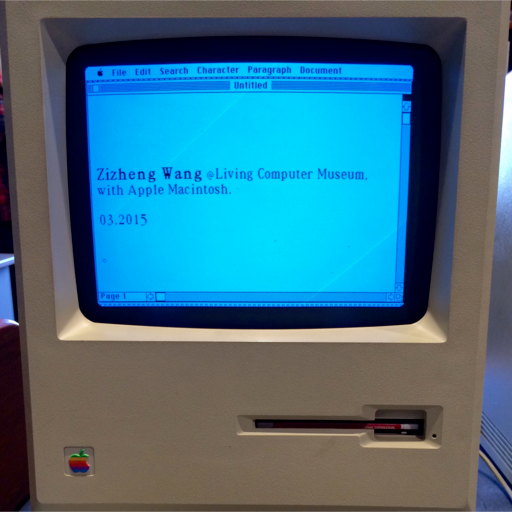 头像是我 2015 年大二春假的时候和朋友们在美国西雅图 Living Computer Museum(计算机博物馆)里,用 1984 年苹果公司生产的 Apple Macintosh 计算机里安装的微软 Word 程序写下的话。该博物馆好像最近刚刚永久关停。