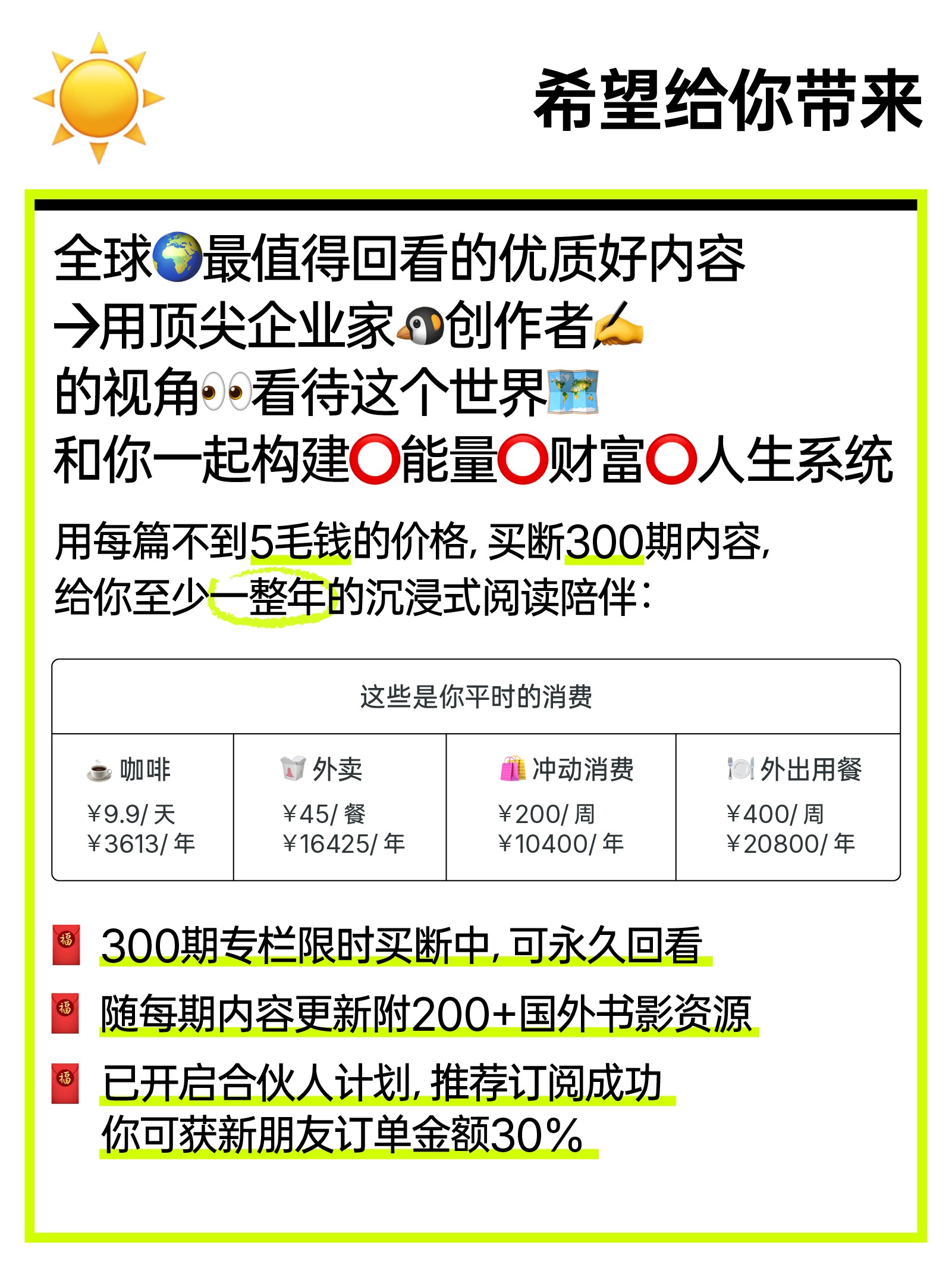 你好哇!我是翊瑄 Camellia。曾旅居新西兰十年、伦敦两年,如今常驻葡萄牙,从事写作、翻译与远程研究工作。 我关注科技、人文与灵性,试着用理性与直觉并行的方式,理解这个不断变化的世界。 在这里每月更新2–3篇精选内容,提炼自140+小时的阅读、播客与视频学习,聚焦: - 前沿科技与创作者经济 - 思维模型与人生哲理 - 灵修实践与个人成长 如果这些主题与你产生共鸣,欢迎订阅加入读者群,与我们同行! 🌐 www.camelliayang.com