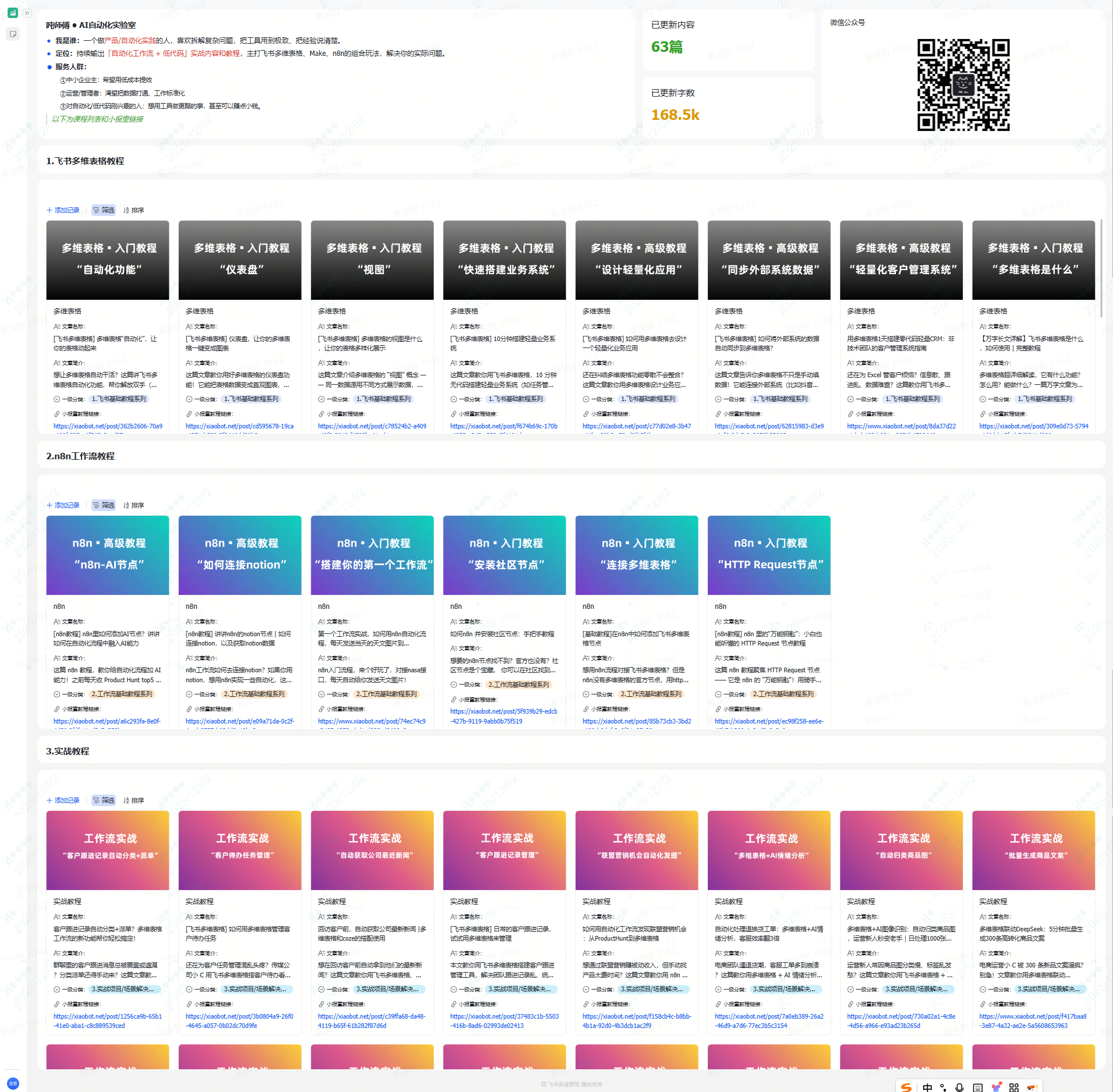 定位:持续输出「自动化工作流 + 低代码」的实战内容,主打飞书多维表格、Make、n8n的组合打法。